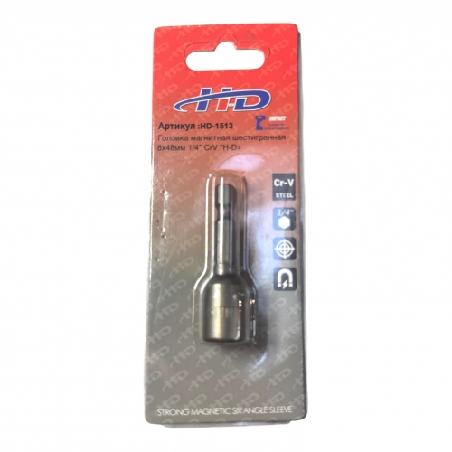 Головка магнитная шестигранная 8х48мм 1/4″ CrV на БЛИСТЕРЕ HD-1513