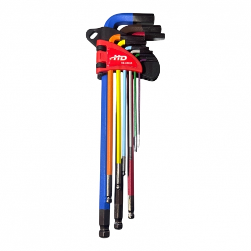 Ключи шестигранные с шариком 1,5-10мм удлиненные разноцветные (набор 9шт.) CrV HD-05635
