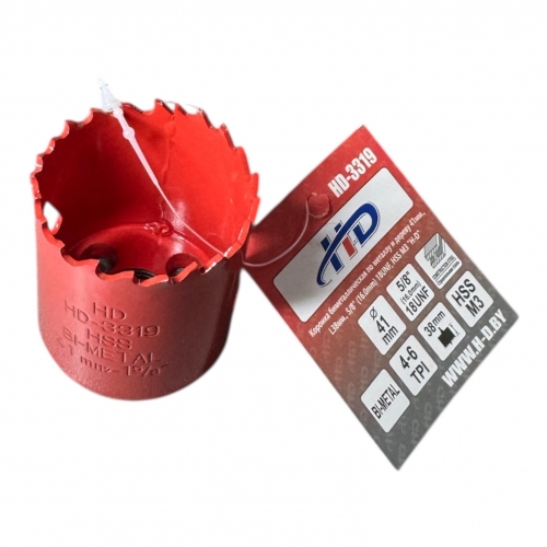 Коронка биметаллическая по металлу и дереву 41мм., L38мм., 5/8″-18UNF, HSS M3 HD-3319