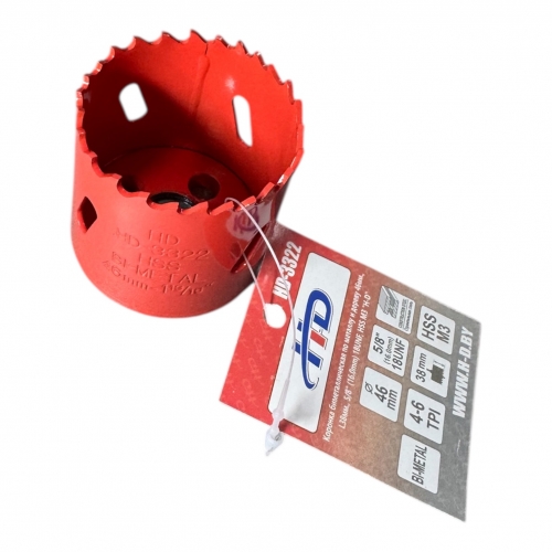 Коронка биметаллическая по металлу и дереву 46мм., L38мм., 5/8″-18UNF, HSS M3 HD-3322