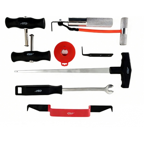 В комплект входят специальные инструменты для поддевания и снятия молдингов и уплотнителей без повреждений.