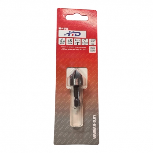 Сверло по металлу конусное зенкер d16.5мм L45мм хвостовик HEX HD-44725